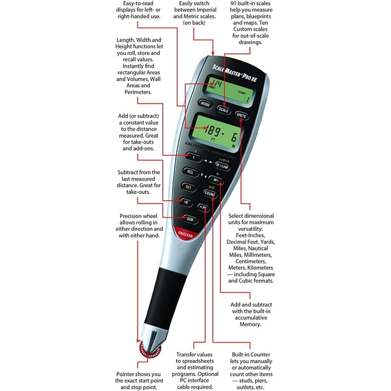 Calculated Industries 6135 Scale Master Pro Xe Advanced Digital Plan Measure For Plan Takeoffs On Printed Blueprints 91 Us Imperial And Metric By Visit The Calculated Industries Store Walmart Com