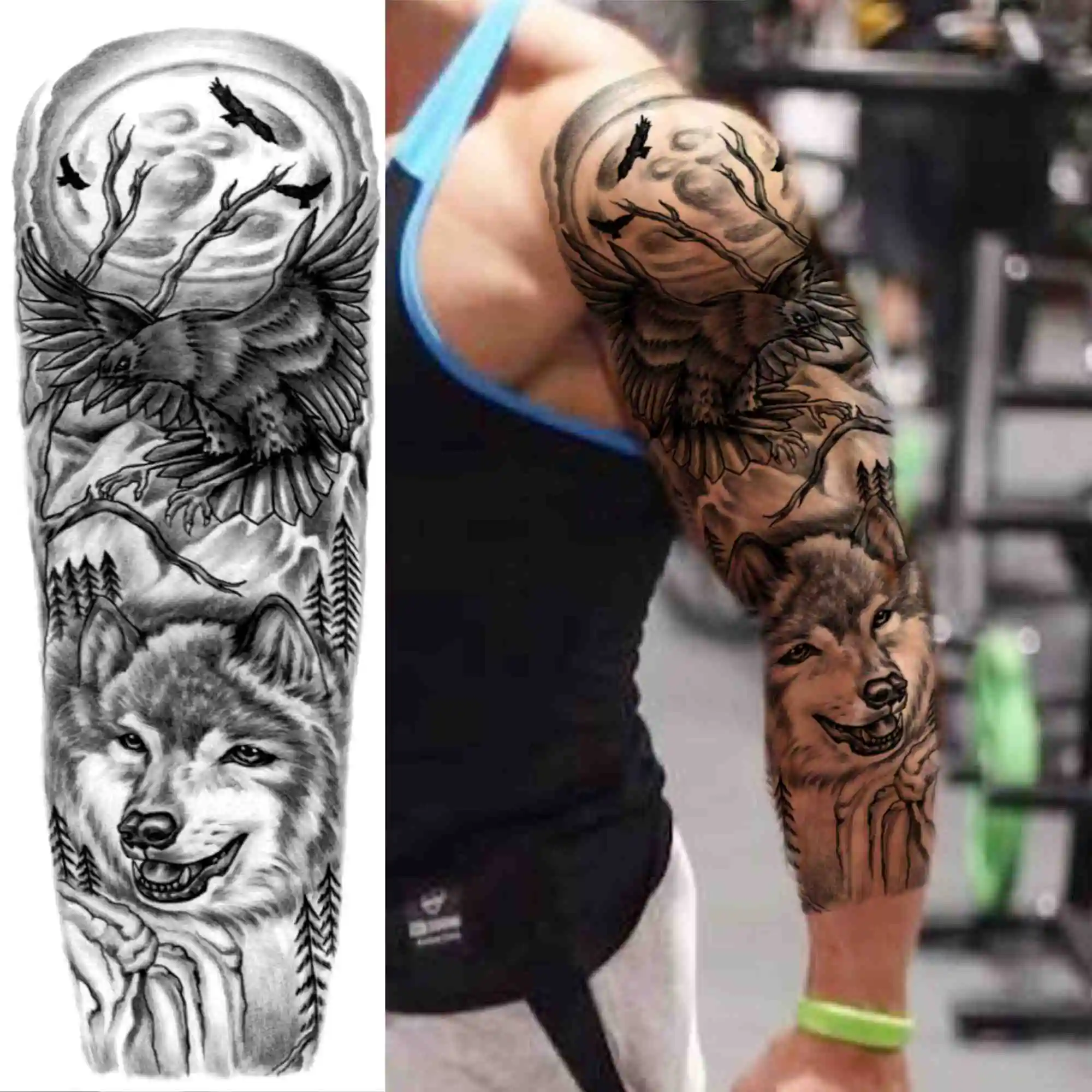 Realistic Eagle Demon Eye Tattoo Sleeve For Men Boy Adult Nun Rose Totem Temporary Tattoos Large Body Art Fake Tatoo Sticker Temporary Tattoos Aliexpress